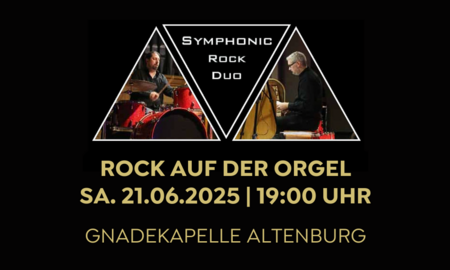 Im Juni kommt das Symphonic Rock Duo, bestehend aus Mario Kröger (Orgel) und Alex Wittmann (Schlagzeug), mit rockigen Klängen in die Gnadenkapelle. Unter dem Motto "Rock auf der Orgel" reicht die Bandbreite der Stücke von Bach bis Metallica und es werden Klassiker der Rockgeschichte u.a von The Doors, Deep Purple, Iron Maiden und Bon Jovi zu hören sein. Außerdem ganz neu im Programm sind Hits von Foreigner, Gary Moore und Nightwish.